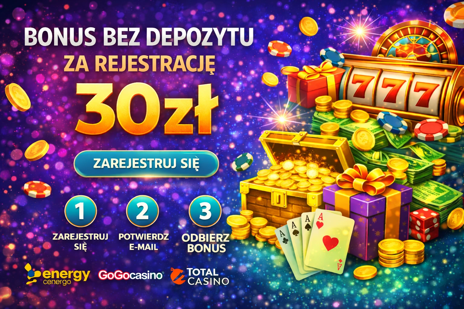Bonus 30 zł za rejestrację to specjalna promocja, którą kasyno przyznaje nowym graczom bez konieczności wpłaty własnych środków. Po utworzeniu konta i weryfikacji danych otrzymujesz 30 złotych darmowej gotówki lub darmowe spiny bez depozytu na wybrane automaty. To doskonała okazja, aby wypróbować ofertę kasyna online i zapoznać się z dostępnymi grami bez żadnego ryzyka finansowego. Kasyno z bonusem bez depozytu daje możliwość realnej wygranej – po spełnieniu określonych warunków obrotu możesz wypłacić wygrane środki na swoje konto bankowe. Wiele polskich kasyn oferuje tę promocję, aby przyciągnąć nowych graczy i umożliwić im start bez depozytu.
