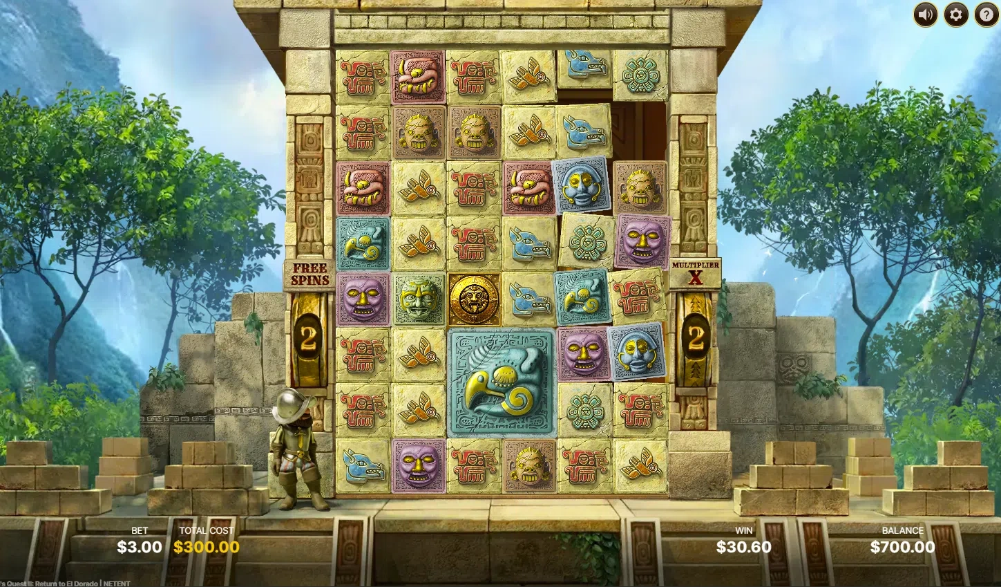 Gonzos quest gra za darmo oferuje unikalne doświadczenie wizualne — animowany Gonzo stoi obok bębnów, reagując na wygrane i porażki. Tło to starożytna świątynia wśród dżungli. Kamienne bloki spadają z nieba i rozbijają się z efektowną animacją. Gonzos quest online zachowuje pełnię efektów 3D 🎨